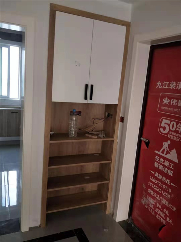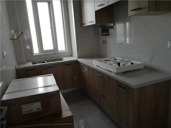 柜子安裝完畢,顏色都比較統(tǒng)一,看著很大方簡(jiǎn)潔。師傅沒有把廚房拍到,等臺(tái)面安裝完工,再一睹為快吧