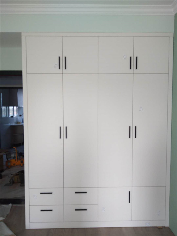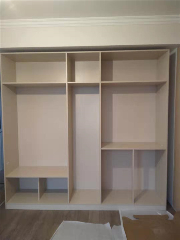 柜體拼裝完畢,大體模樣已經(jīng)出來了,再有一天把柜門裝上就差不多結(jié)束啦,好看的柜子少不了搭配高品質(zhì)的五金:海蒂詩(shī)導(dǎo)軌,諾米鉸鏈,反彈器,ABS尼龍柜腳,索菲亞掛衣架等