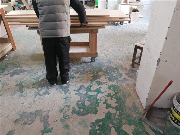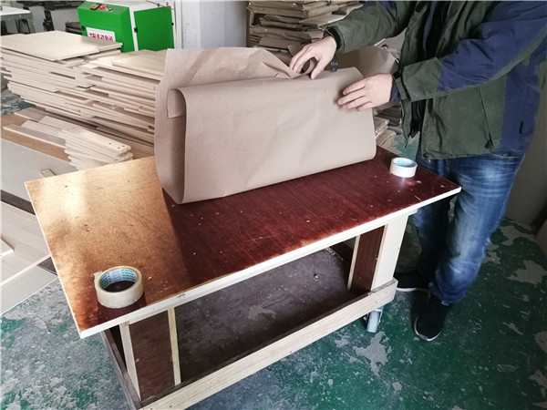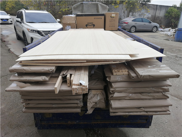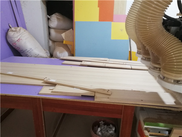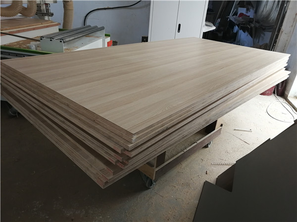 開始制作啦!柜體裁板中,板材使用平安樹實木多層板上品橡木E0級制作,有高級的藍光防偽標識哦