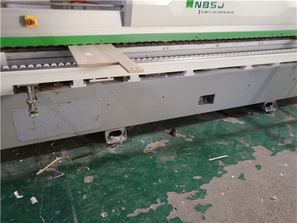 開始封邊啦,封邊采用法國波士熱熔顆粒膠,設(shè)備溫度達到200°C封出來的邊牢固,沒有爆邊,完美無瑕。每塊板上都貼有小標簽,方便后期安裝師傅安裝