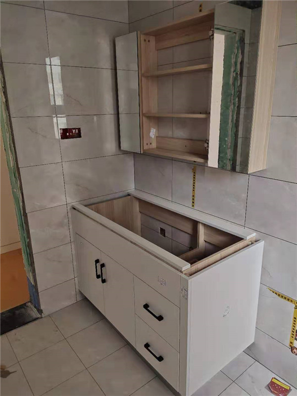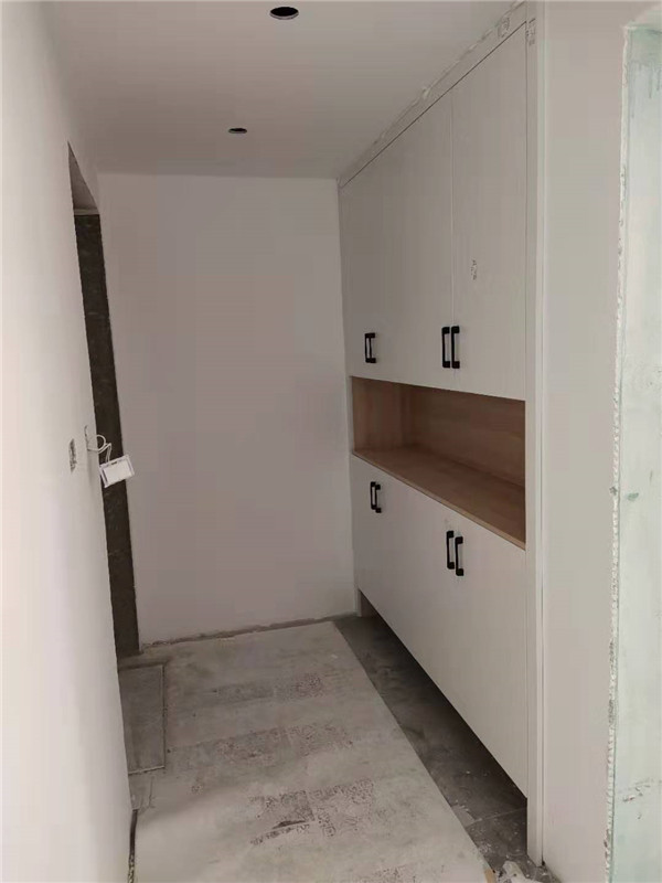 柜子整體安裝結(jié)束,白色柜門看著不錯,簡單大氣。玻璃門也比較亮點的呢。