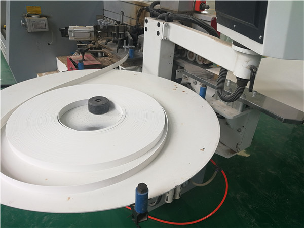 開始封邊啦,封邊采用法國(guó)波士熱熔顆粒膠,設(shè)備溫度達(dá)到200°C封出來的邊牢固,沒有爆邊,完美無瑕。