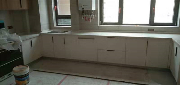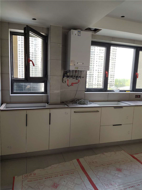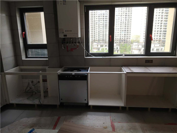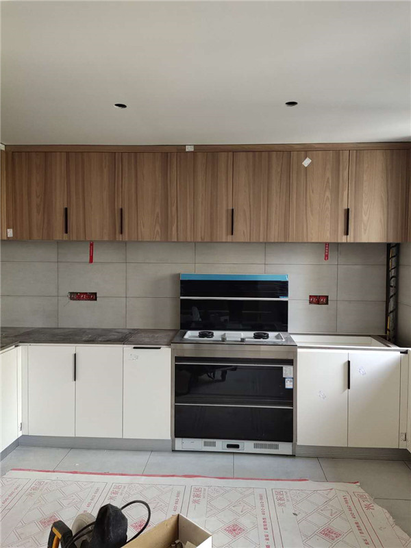 柜體基本安裝結(jié)束啦!櫥柜柜體上下柜跳色,蠻有特色的,嘻嘻