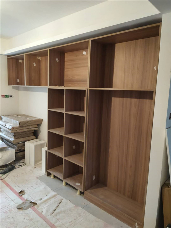 開始制作啦!專業(yè)設(shè)備裁板,沒有爆邊。衣柜板材使用平安樹暖白實(shí)木多層板E0級(jí)制作,有高級(jí)的藍(lán)光防偽標(biāo)識(shí)哦