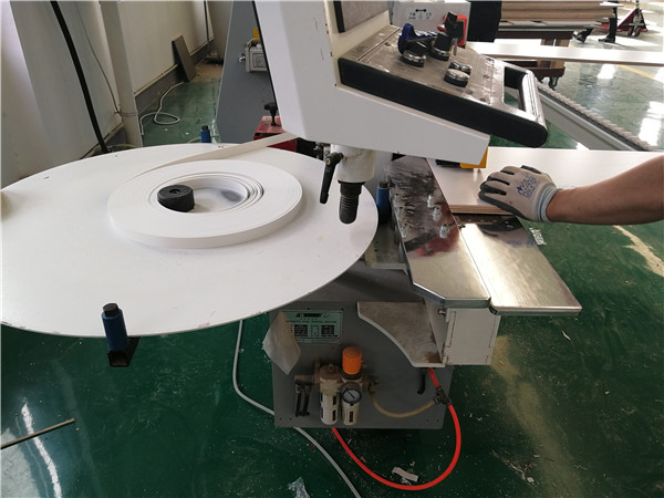 開始封邊啦,封邊采用法國波士熱熔顆粒膠,設備溫度達到200°C封出來的邊牢固,沒有爆邊,完美無瑕。