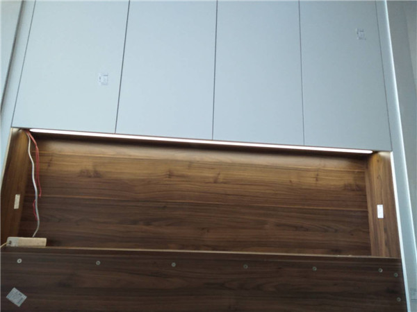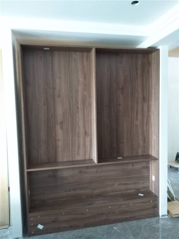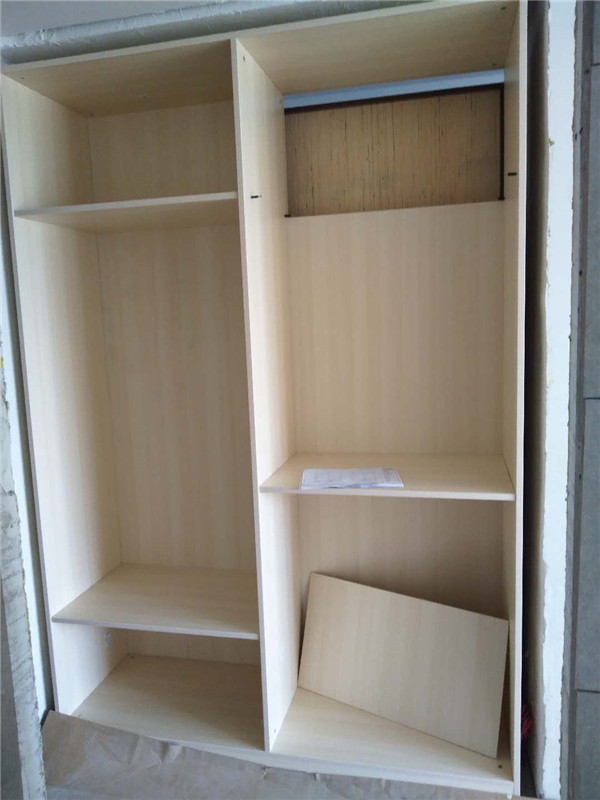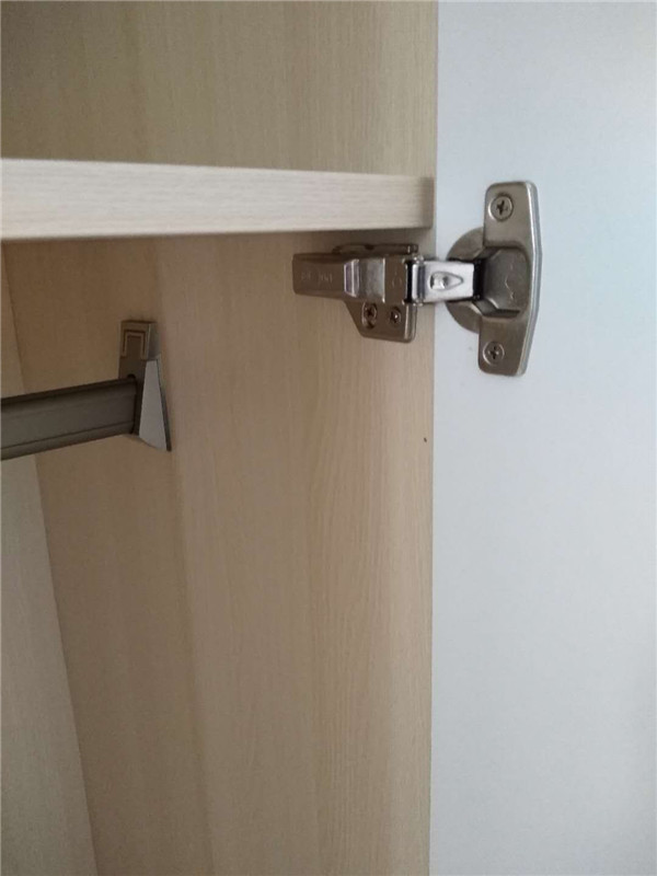 柜體基本安裝完畢,柜體的安裝少不了五金的搭配,諾米鉸鏈,導軌,索菲亞掛衣架等