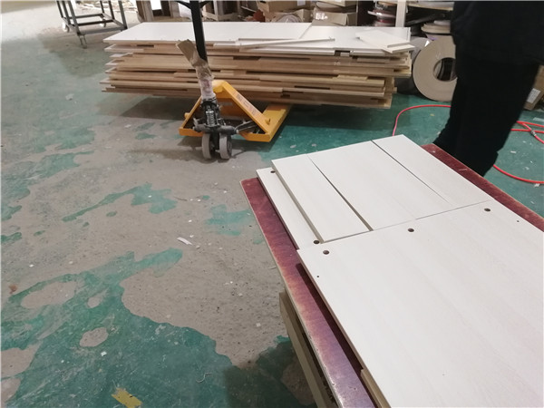 開始制作啦!專業(yè)設(shè)備裁板,沒有爆邊。板材使用平安樹實(shí)木多層板E0級制作,有高級的藍(lán)光防偽標(biāo)識(shí)哦