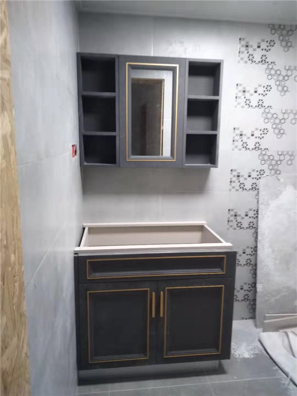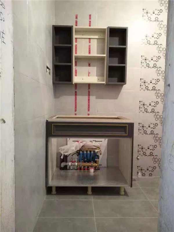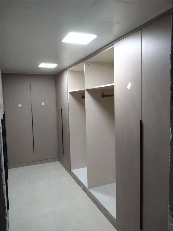 安裝結(jié)束,來(lái)看下這大大的衣帽間,以后就不是少一件衣服了,而是少一個(gè)衣柜的衣服了,哈哈哈,可以買起來(lái)了。衛(wèi)浴柜也很好看吶,鑲銅條顏值很高??!