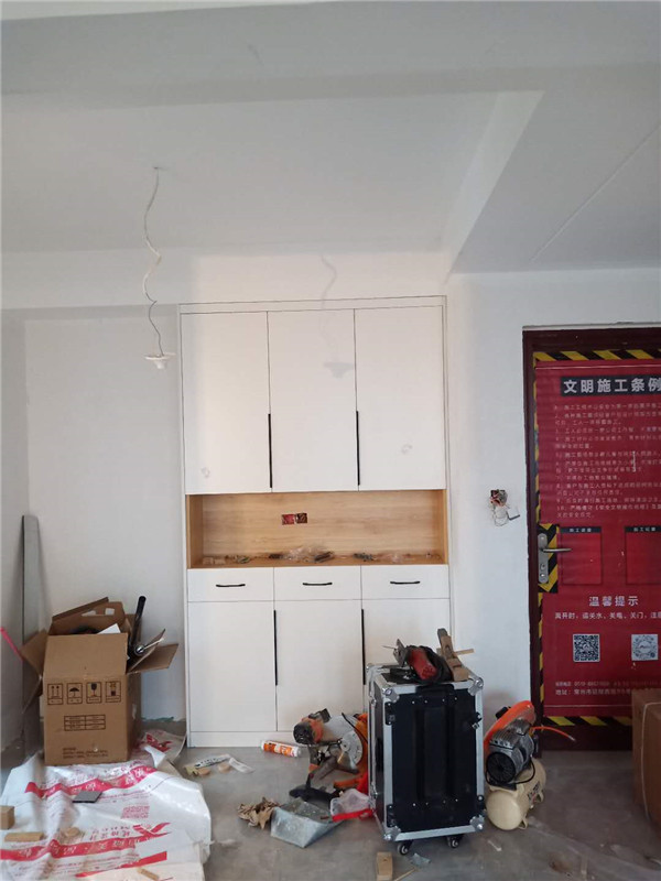 柜子已經(jīng)安裝好了,等著臺(tái)面安裝