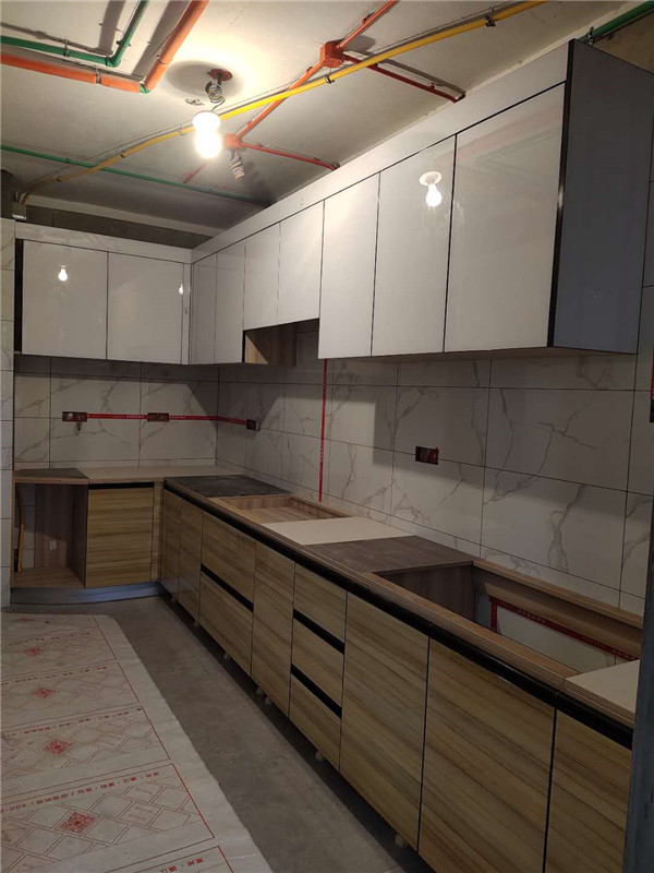 再來一波廚衛(wèi)和陽臺柜。廚房水槽下還有錫紙防水。