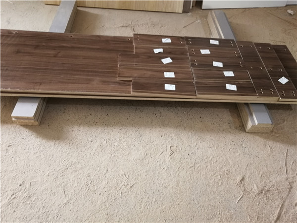 開始制作啦!榻榻米等柜體裁板中,板材使用平安樹實木多層板,大富大貴E0級制作,有高級的藍光防偽標識哦