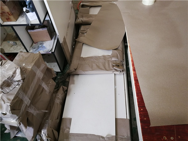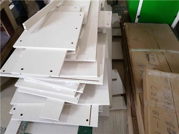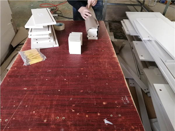 每塊板上都貼有小標(biāo)簽,方便后期安裝師傅安裝,封邊條上都帶有“優(yōu)端”logo的哦!方便后期售后。打孔也安排上咯!
