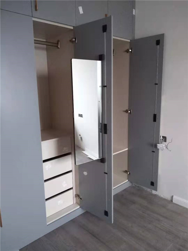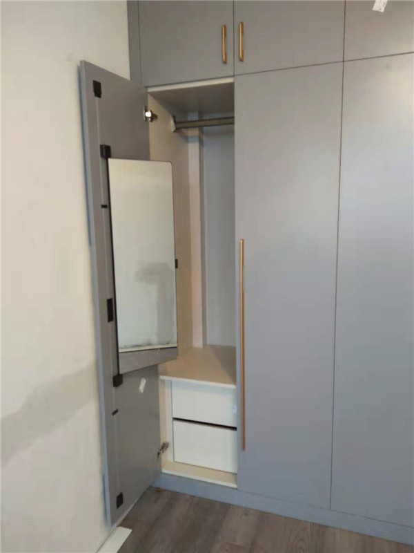 打開(kāi)衣柜里面也很豐富喲,穿衣鏡、褲架、飾物籃都配齊了,長(zhǎng)門(mén)都拉直器的哦,防止門(mén)板變形。