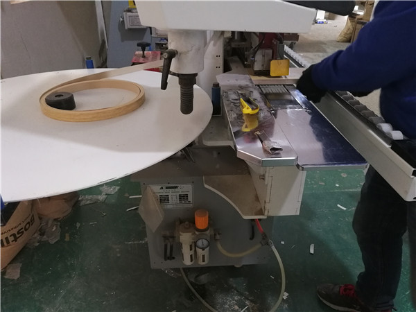 倒角、打孔中,倒角的好處:第一整體效果美觀,第二以防后期開(kāi)門磕碰到。等著打包了