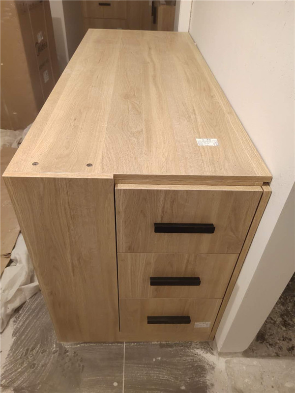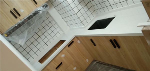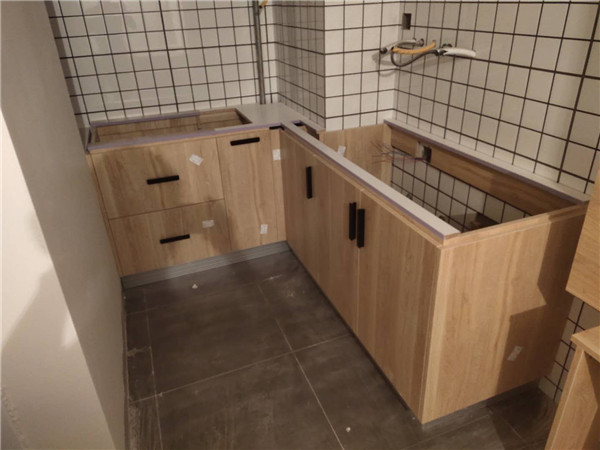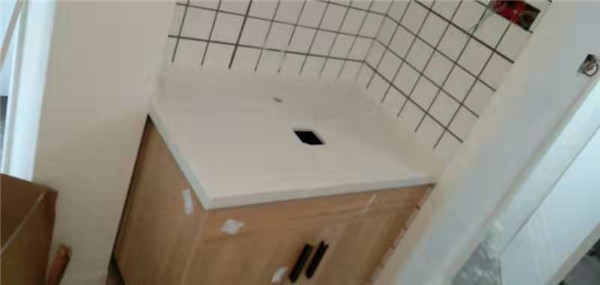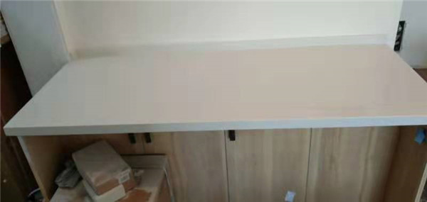 臺面安裝完畢啦,臺面下面還鋪有一層1.8公分厚的臺墊板,可以增加受力面積,臺面不容易斷裂。