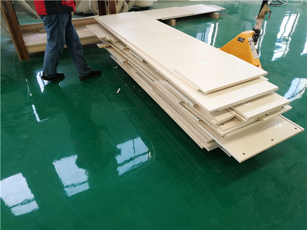 開始制作啦!專業(yè)設(shè)備裁板,全自動開料尺寸更精準(zhǔn),沒有爆邊。板材使用平安樹實(shí)木多層板E0級制作,有高級的藍(lán)光防偽標(biāo)識哦