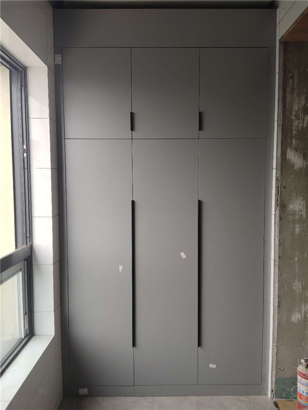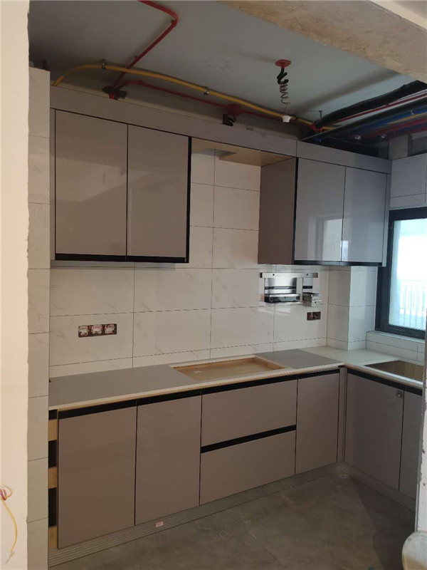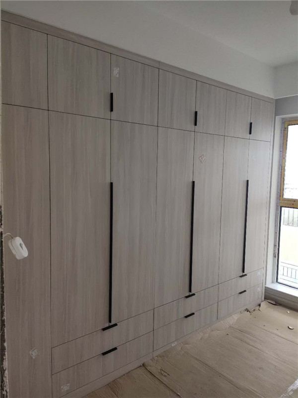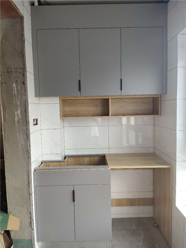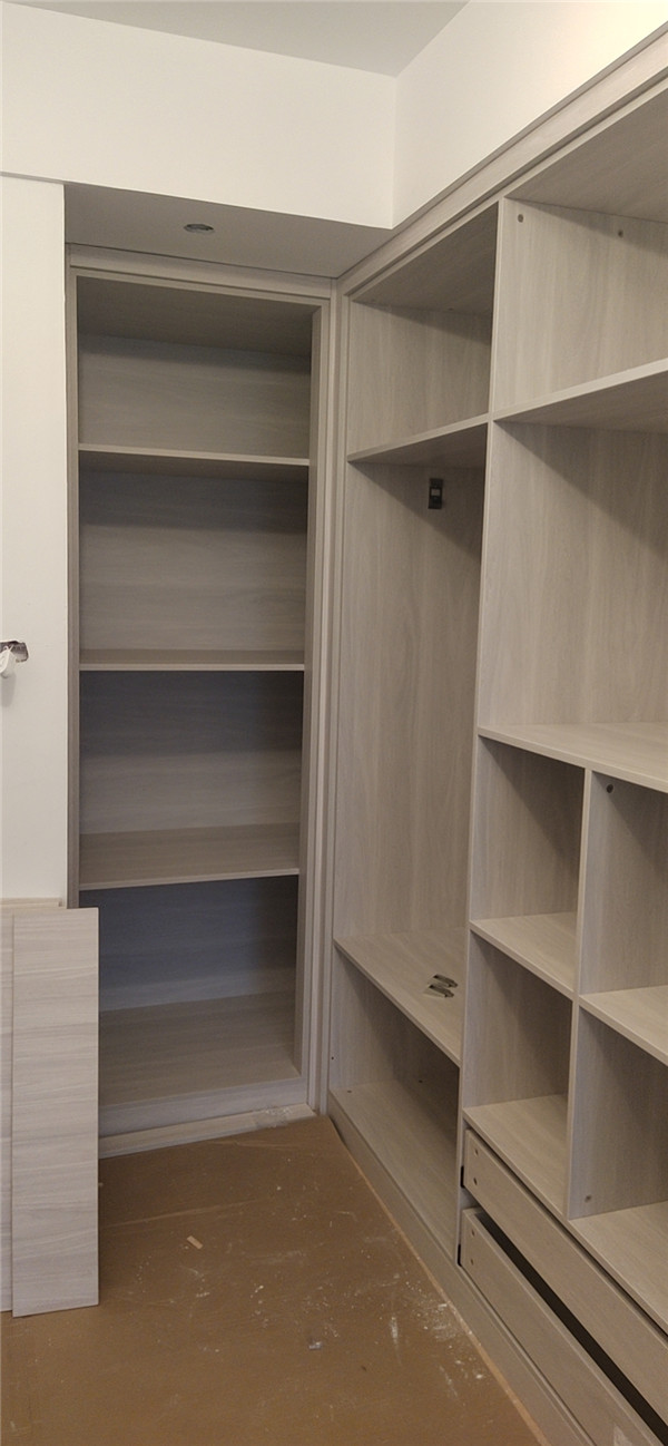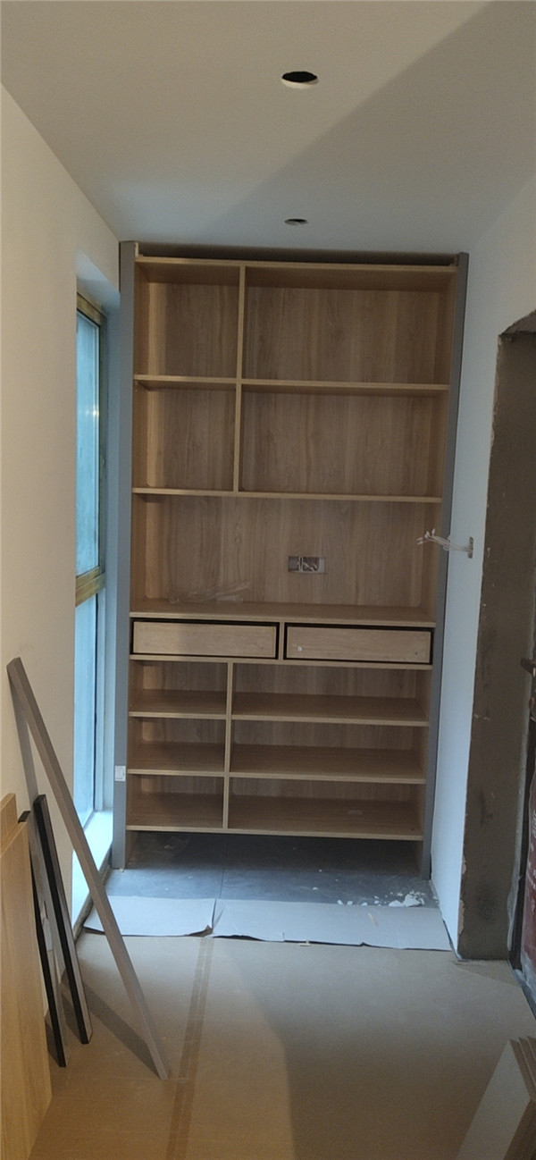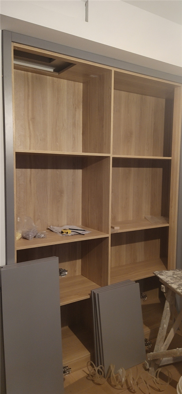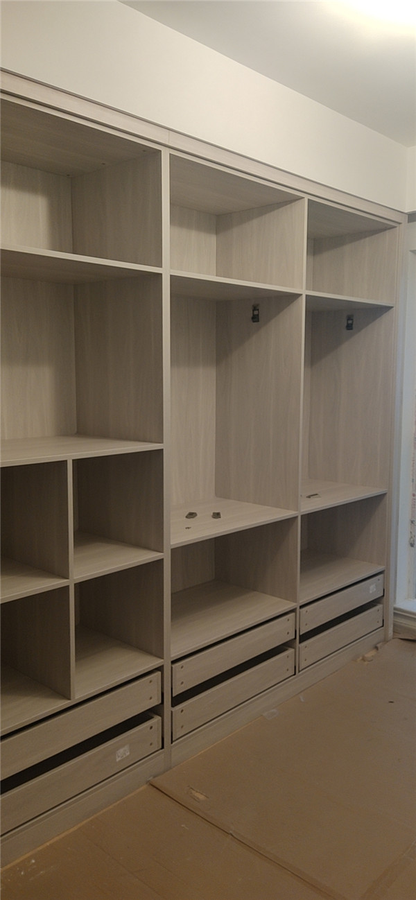 經(jīng)過(guò)幾天的努力柜體全部拼裝完畢,固定起來(lái)了。業(yè)主家柜體采用的都是淺色系,看上去清爽干凈。