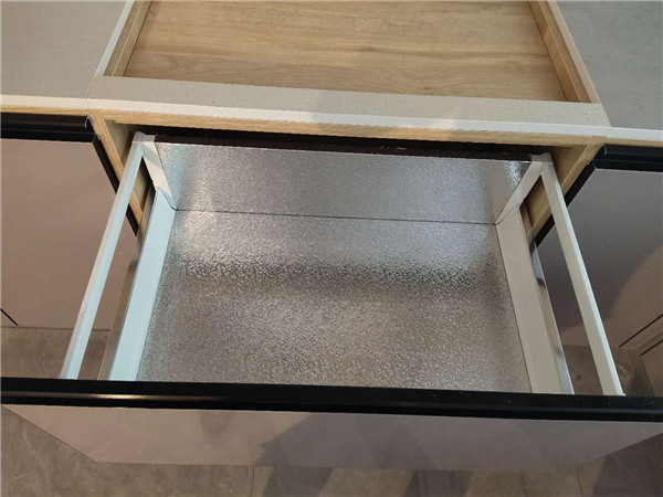 柜子的整體效果可少不了他們的襯托哦!廚房水槽下面都鋪有錫紙的,拉籃換成了騎馬抽,利用率更高。鉸鏈采用的諾米的。