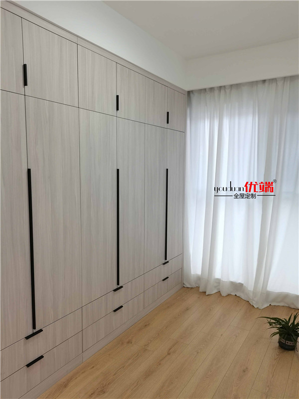 還有個(gè)大大的衣帽間,后期換季衣服被子統(tǒng)統(tǒng)放進(jìn)去。從柜子的內(nèi)部結(jié)構(gòu)來(lái)看,