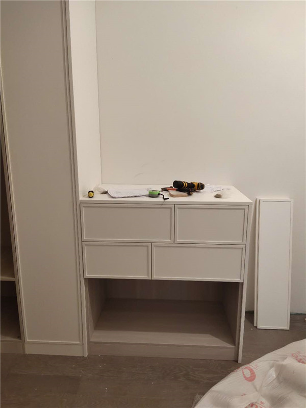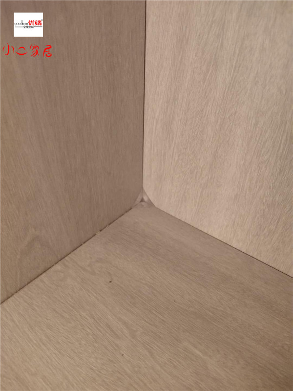 我們的柜體靠墻部分都是用的插槽的背板,背板離墻面距離1.2公分,防止后期使用時(shí)間長(zhǎng)柜體發(fā)霉。