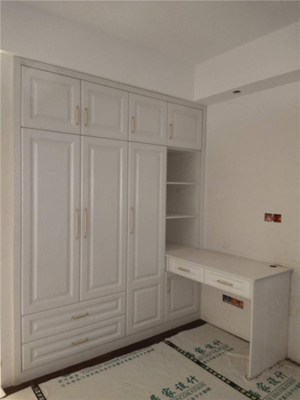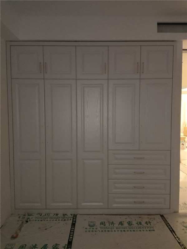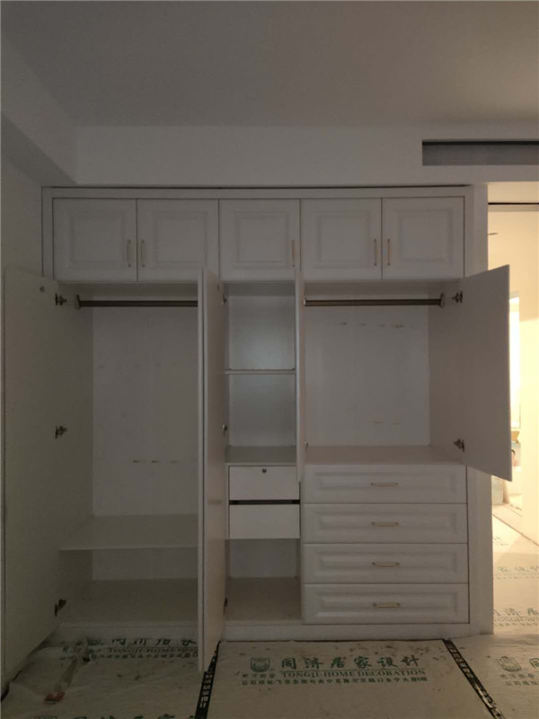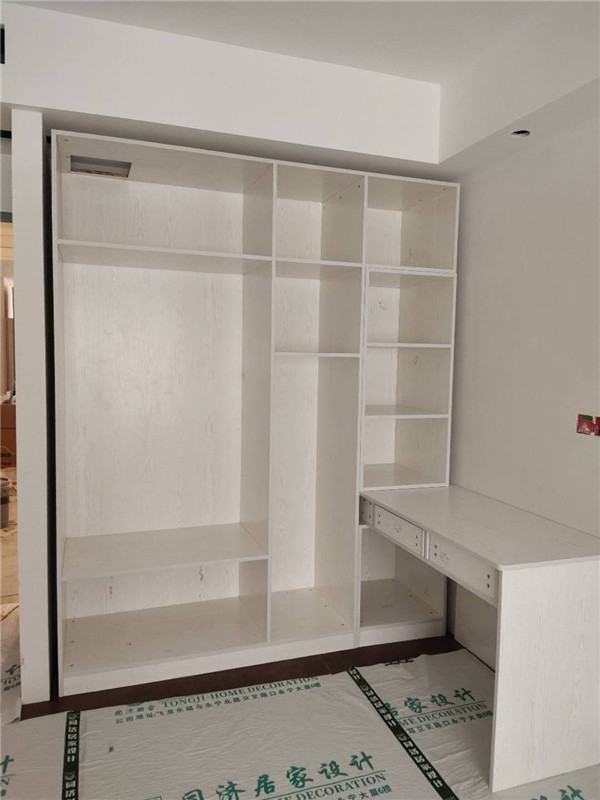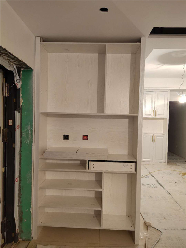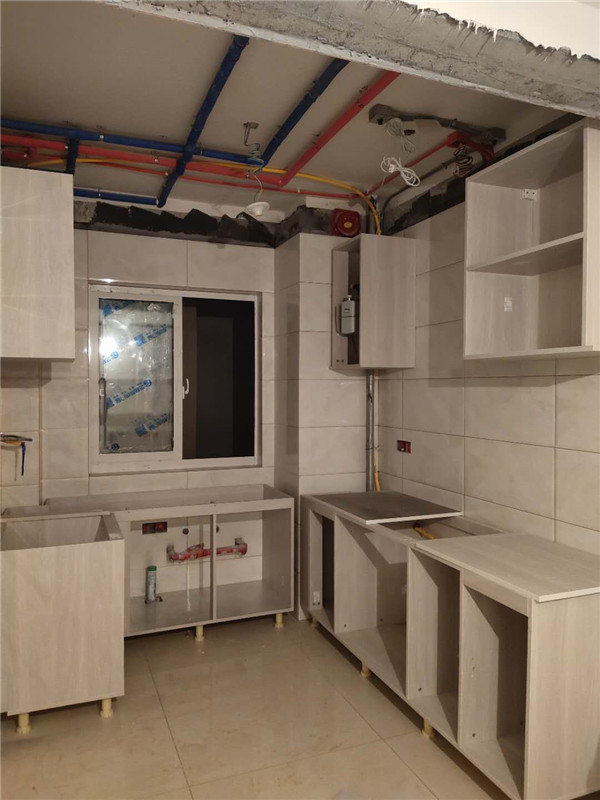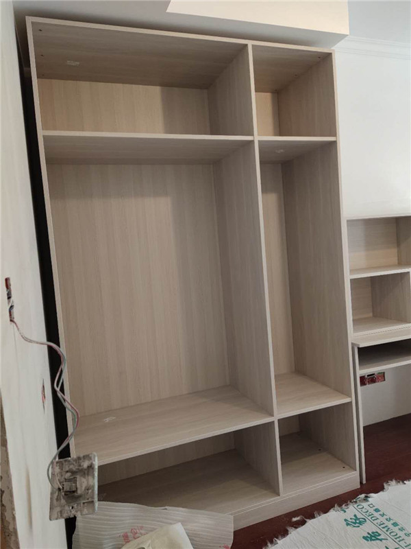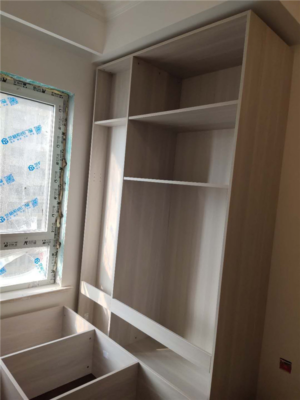 柜體已經(jīng)拼裝完畢,豎起來了,業(yè)主家柜體以淺色調(diào)為主,整體效果清爽干凈,在過兩天等柜門安裝好整體效果就出來啦!