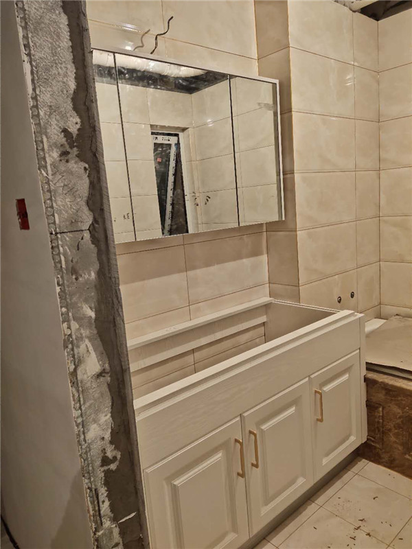 灶具、浴柜臺(tái)盆放置在現(xiàn)場(chǎng),后期臺(tái)面安裝需用到。柜子安裝好后進(jìn)入臺(tái)面測(cè)量環(huán)節(jié),臺(tái)面量完后一個(gè)星期內(nèi)送貨并安裝。