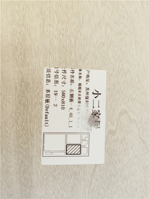 我家不管大小板都是四面封邊哦!每塊板上都貼有小標(biāo)簽,方便后期安裝師傅安裝。