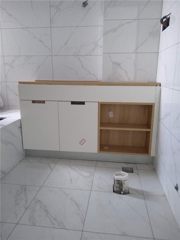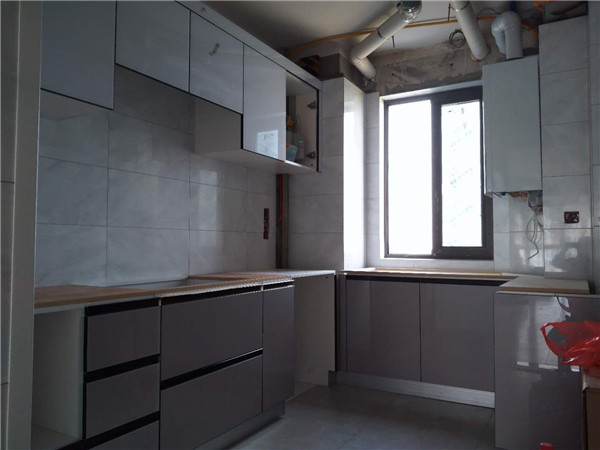 【小二跟單2734】蔚藍(lán)天地,晶鋼門柜門加實(shí)木多層板柜體櫥柜等,安裝中