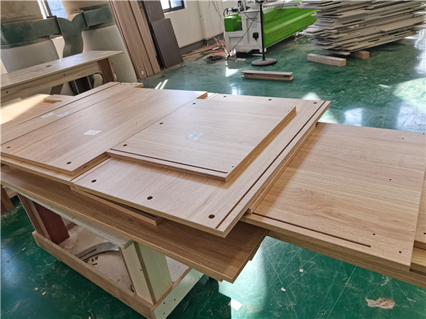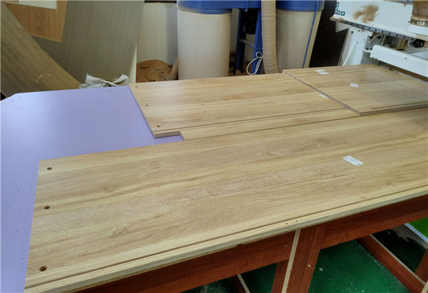 開始制作啦!專業(yè)設(shè)備裁板,板材使用平安樹實木多層板E0級制作,有高級的藍光防偽標識哦,邊口都是直的,沒有爆邊的情況,
