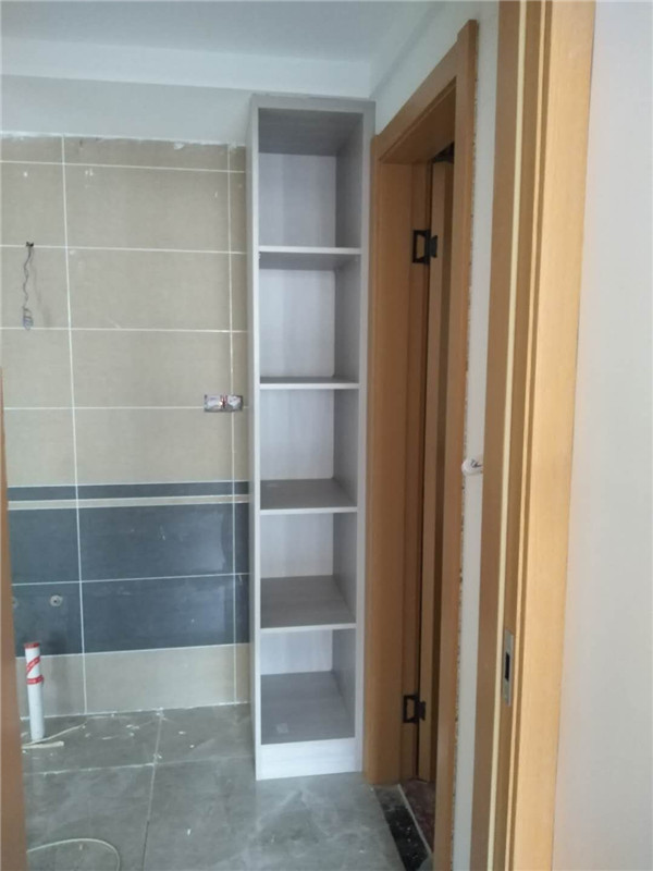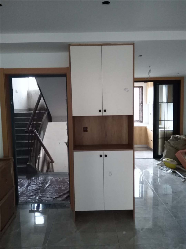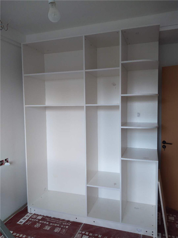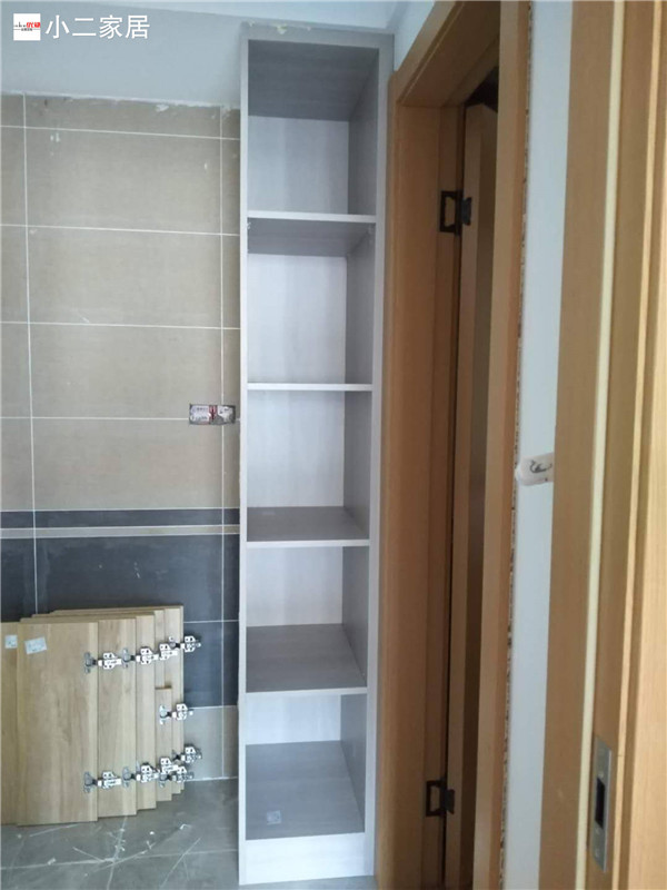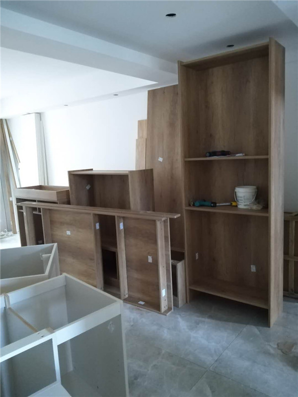 一天的時間,師傅柜體基本拼裝完畢,個別柜體已經(jīng)豎起來還未固定,