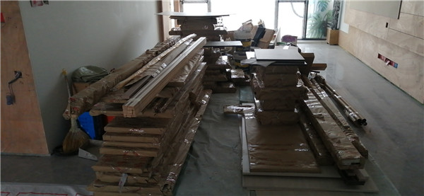 拆好的板師傅都整整齊齊放在墊板上,沒(méi)有高矮不齊的現(xiàn)象,板下面都?jí)|了墊板的哦,
