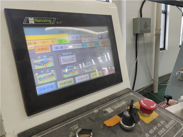 膠水采用美國波士熱熔顆粒膠,夏天溫度比較高,當設備溫度達到160℃以上就好開始封邊了。我家不管大小板都是四面封邊哦!