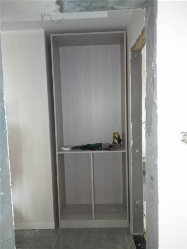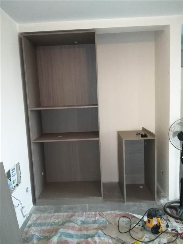 經(jīng)過師傅三天的努力,柜體基本拼裝完,豎立起來了,