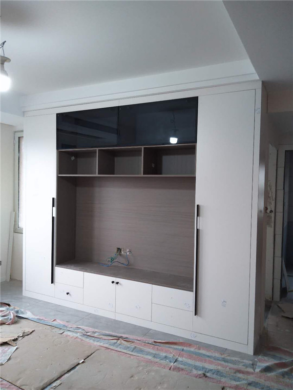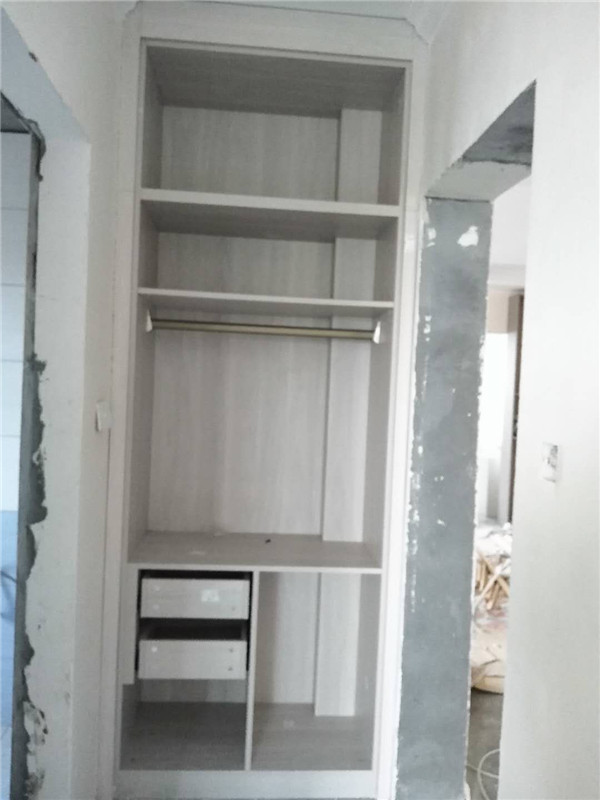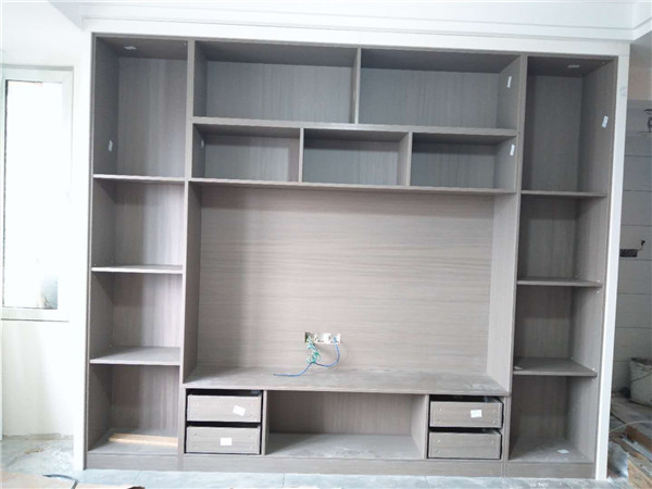插槽背板離墻面1.8公分,防止使用時間常出現(xiàn)柜體發(fā)霉的現(xiàn)象。拆好的板師傅都整整齊齊放在墊板上,