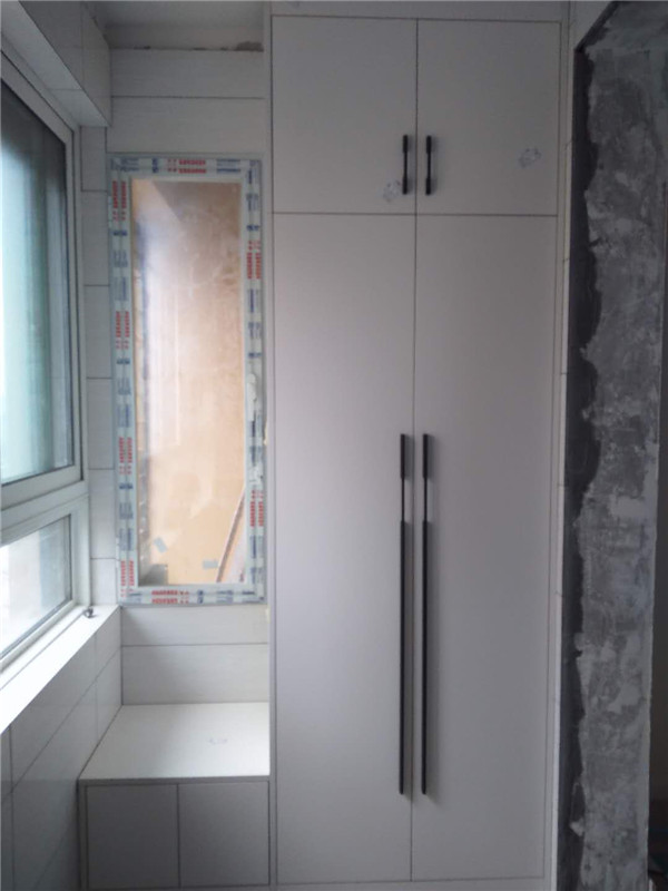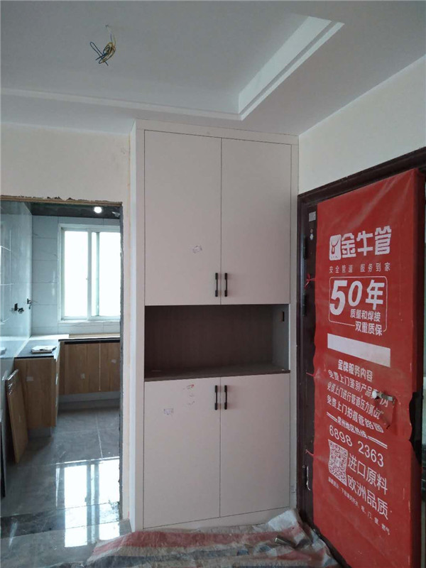 柜子的整體效果出來啦!就如業(yè)主所說拉手一裝整體效果更漂亮了。業(yè)主家可以說能做柜子的地方基本都做了柜子,